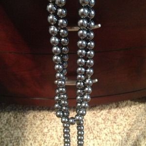 🔴SOLD🔴Ultra long gunmetal faux pearl necklace