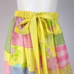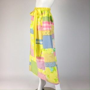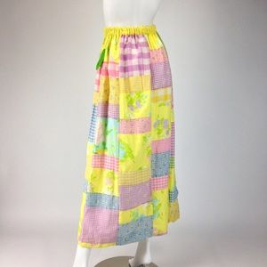 Super cute vtg 70s patchwork maxi skirt in yellow+pastel patchwork! *-*