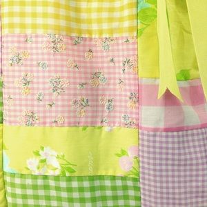 •Patchwork gingham, floral + paisley w the words "blueberries" & "persimmons"