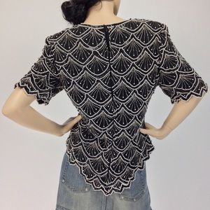 [SOLD]VINTAGE 80s BEADED TOP Sharp Shoulders SILK