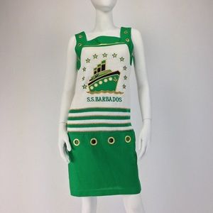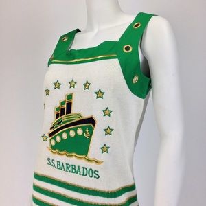 Rare vtg 80s dress w kitschy Barbados nautical cruise theme <3