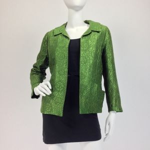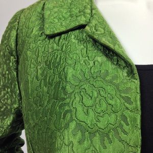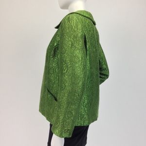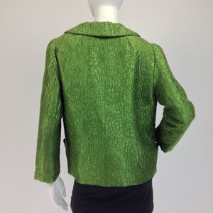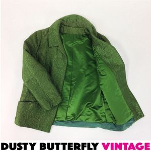 Mod 60s box jacket with luminous moss green brocade + a luxe satin lining. Gorgeous!