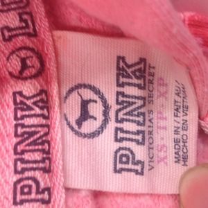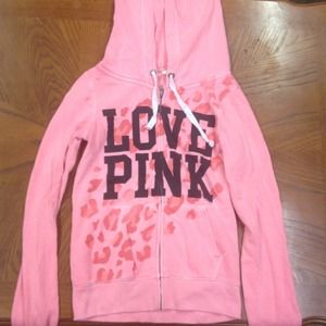 Victoria secret love pink zip up jacket. The pair of shorts that goes with them is in my closet. Very cute a little worn, but that's how it's made to look!