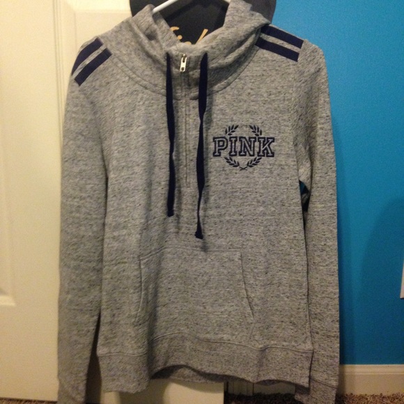 ❌SOLD❌on Mercari. Brand new vs pink grey marled navy blue striped sleeves half zip hoodie pullover sweatshirt. Size large