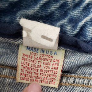 100% Heavy Cotton Denim Made in USA. Sturdy with a lot of Life left in them.