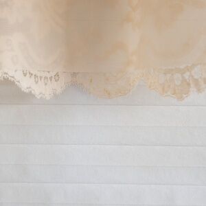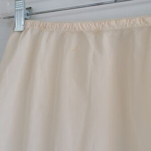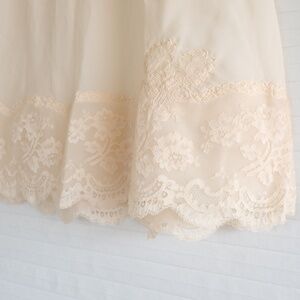 Elegant cream midi skirt with delicate lace trim. Perfect for any occasion. Sheer material. Some stains pictured.