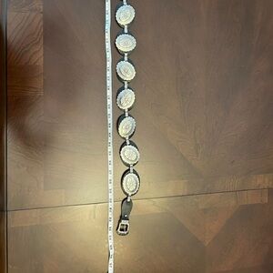 SOLD!!!Vintage Collectible Silver Large Oval Concho Belt. RARE 33”
