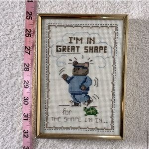 SOLD-Vintage Handmade Needlepoint Workout Bear Art