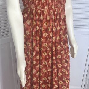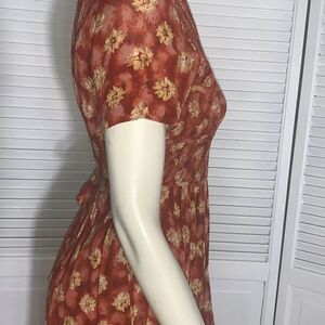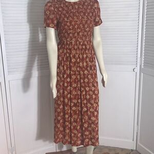 *SOLD*Vintage Karin Stevens Rust Floral Smocked Dress Tie Waist Size 6