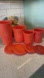 Love this color! Vintage Orange Tupperware canisters with lids. One lid is slightly darker.