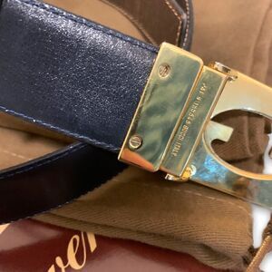 Composition: Gold-Tone Hardware, Brown/Dark Navy Blue leather belt.