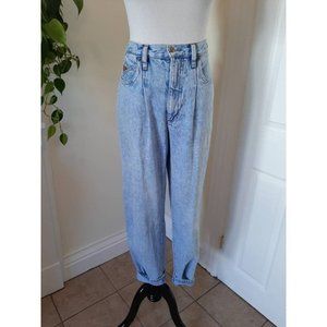 Cute 80s tapered leg denim! Light stone wash. Pleats at the waist and the 'v' back placket add to the 80s look! These even have neat double belt loops which I've never come across before! 100% cotton.