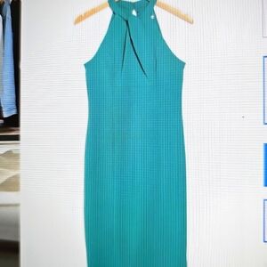 SOLDWT Julia Jordan Twist Neck Elegant Fitted Sheath Dress Sky Blue Size 14