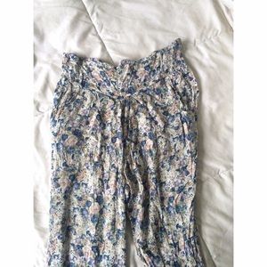 These lightweight joggers have a vintage-style floral pattern, deep pockets, and stretchy waistband and ankle bands. They are high waisted, so they're super trendy. Made of a lightweight silky linen material. Purchased these at a cute little hole-in-the-wall boutique, never worn, NWOT and in perfect condition, just need to be ironed LOW. (waist measurements 26 minimum, max measurements vary due to stretchy waistband).