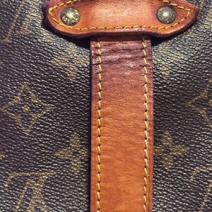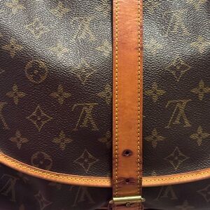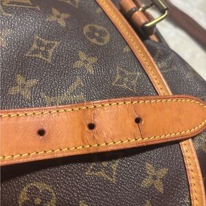 Stylish Louis Vuitton crossbody with iconic monogram. Features tan leather accents. Ideal for everyday elegance.