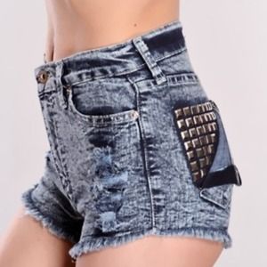 New acid washed distressed high waisted shorts with studded back detail. Says size large but would fit a medium best