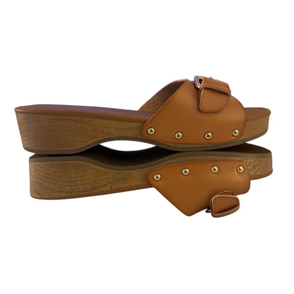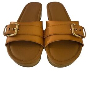 SOLDxxxxxxxxxxxxxx into comfort and style with these chic tan slide sandals. Perfect for any casual outing.