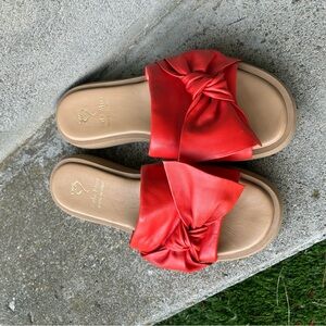 SOLE BLISS Bailey coral red sandals soft Italian leather BOW slides sz 40 NWOT