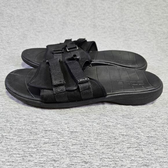 SOLE Mens Mendocino Orthotic Slide Sandal Black Adjustable Arch Support Sport 14