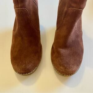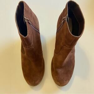 SOLE SOCIETY Gwen russet womens brown suede round toe wedge ankle zip booties
