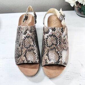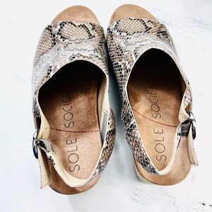 SOLE SOCIETY Wedge Heel Espadrilles, Snakeskin Beige, Size 7.5