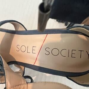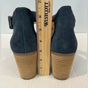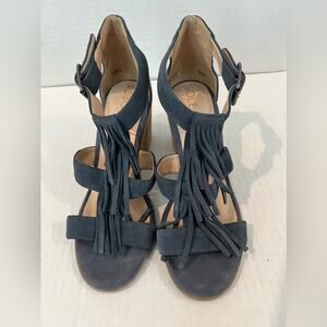 SOLE SOCIETY Women's Delilah Suede Leather Fringe Block Heel Sandal Shoes Blue 9