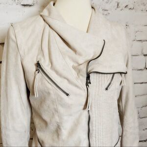 SOLEMIO Beige Vegan Suede Moto Jacket Size Large