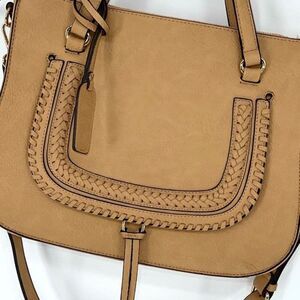 SOLE SOCIETY WOMEN'S DESTIN CROSSBODY BAG 2 VEGAN STUDDED WHIPSTICH CAMEL LEATHER