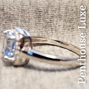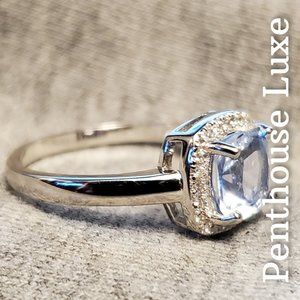 Sparkling cushion cut aquamarine with high quality brilliant-cut zirconias on a solid 925 sterling silver band. Laser engraved "S925". Guaranteed 100% genuine!! All photos are real and taken by Penthouse Luxe.