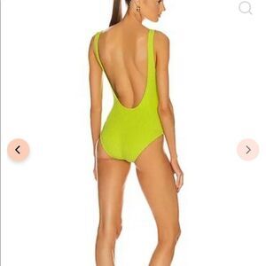 SOLID AND STRIPED Womens The Anne-Marie in Chartreuse Rib Button Swimsuit Sz XS