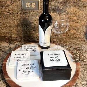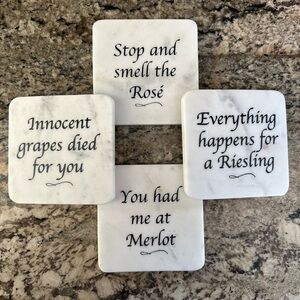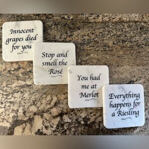 SOLID MARBEL COASTERS WINE lovers theme fun sayings nature stone set of 4 boxed