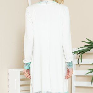SOLID MIDI OPEN CARDIGAN WITH TIE DYE CONTRAST