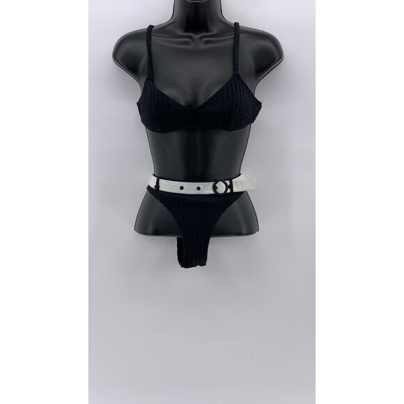 SOLID & STRIPE Women's Black Ribbed Belted V-Neck 2pc Bikini SZ S/M