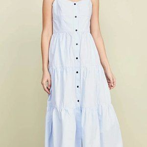 SOLID & STRIPED Button Up Tiered Casual Midi Dress - Powder Blue