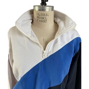 SOLID & STRIPED Color Block Blue Cotton Pullover Sweatshirt Size Large