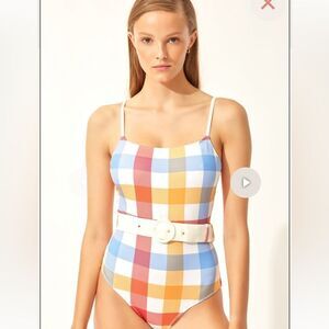 Chic swimsuit with vibrant stripes. Ideal for a stylish beach day. Worn 2x. Comes with belt as shown no flaws