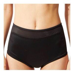 These bottoms are perfect for those who prefer a fuller coverage. This form-fitting silhouette with mesh detailing hits right at the belly button while providing a flattering shape for all body types.