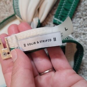 SOLID & STRIPED Women's Green And White Striped Bikini Top Size Large