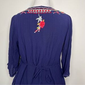 SOLITAIRE Blue Flare Sleeve Floral Embroidered Tunic Top V Neck Tie Back Size M