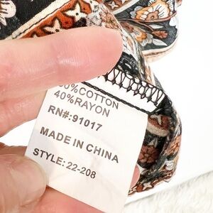 SOLITAIRE ORANGE BLACK TAN FLORAL PATTERN PEASANT BOHO BLOUSE WOMENS SZ MEDIUM