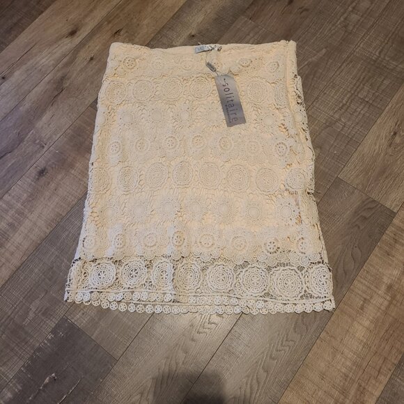SOLITAIRE Skirt by RAVI KHOSLA Ivory Lace Overlay LINED Below-Knee NWT, Sz L