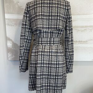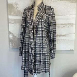 SOLITAIRE TRENCH COAT GLEN GREY BLACK PLAID SLASH POCKET OPEN FRONT SIZE S NWT