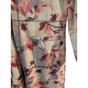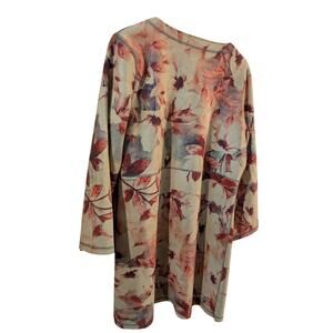 SOLITAIRE Tan & Red Floral Faux Suede Open Front Coat Duster LARGE EUC