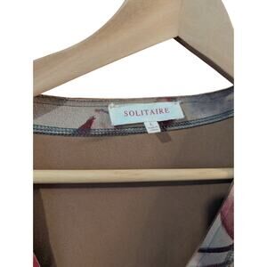 NWT SOLITAIRE Jacket Womens Large Tan Floral Faux Suede Open Front Overcoat
