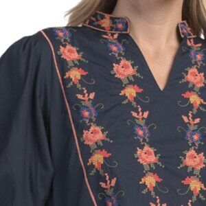 SOLITAIRE Three-quarter Sleeve Floral Embroidered Midi Dress