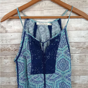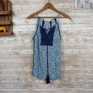 SOLITAIRE Women's Blue Crochet Patterned Sleeveless Tank Top Size S