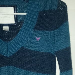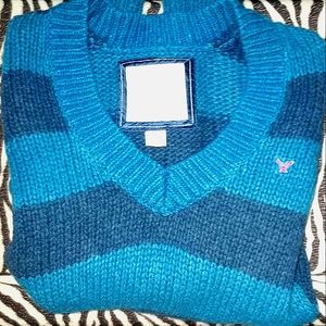 Y2K American Eagle Sweater. Bold two-toned blue stripes. Very thick and warm sweater. Great for layering in those cold winter months.