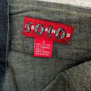 SOLO jeans capris Size 6 Dark blue color. Flower print on the waistline. Split 3 in. on the bottom of the leg. Measurements are in the pictures. Like new Excellent condition Smoke free home