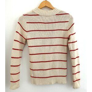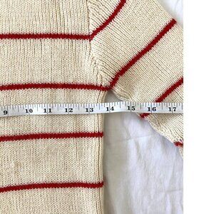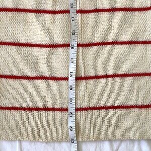 TIMELESS CLOSET STAPLE - GET READY FOR FALL! Originally purchased at a boutique in Los Feliz, this cozy and breathable sweater from SOLOSIX is a standout in quality and simplicity. Made in Bolivia from 100% pure alpaca wool, it's ultra-soft, warm without bulk, and perfect for layering year-round. The sweater features a classic crew neckline and a flattering slim fit, with an off-white base and rich red horizontal stripes.