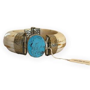 ❤️SOLS❤️Saks Fifth Avenue Stunning Turquoise Center Stone Hinge Bracelet